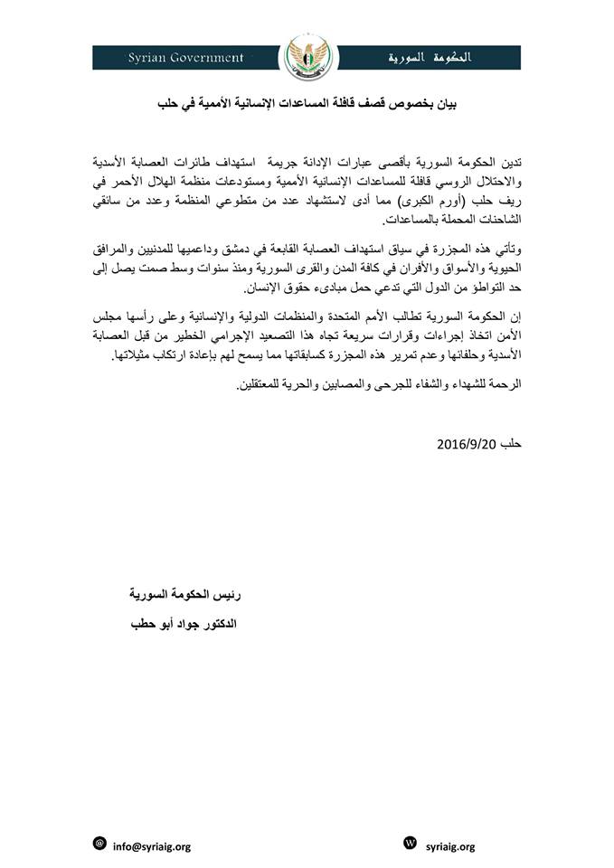 بيان إدانة من الحكومة السورية المؤقتة لقصف مركز للهلال الأحمر السوري في أورم الكبرى