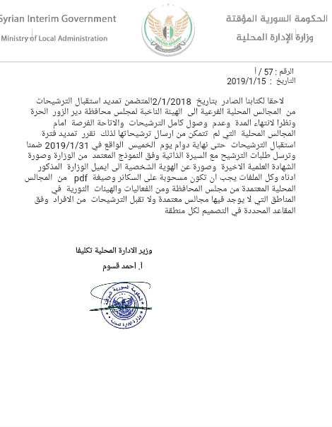 تعميم تمديد استقبال طلبات الترشيح للهيئة الناخبة لمجلس محافظة دير الزور