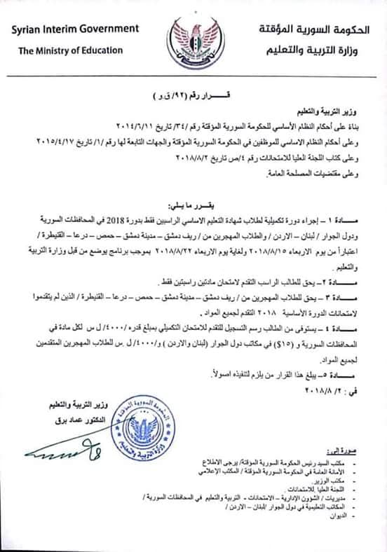 وزارة التربية والتعليم- الحكومة السورية المؤقتةالمجموعات