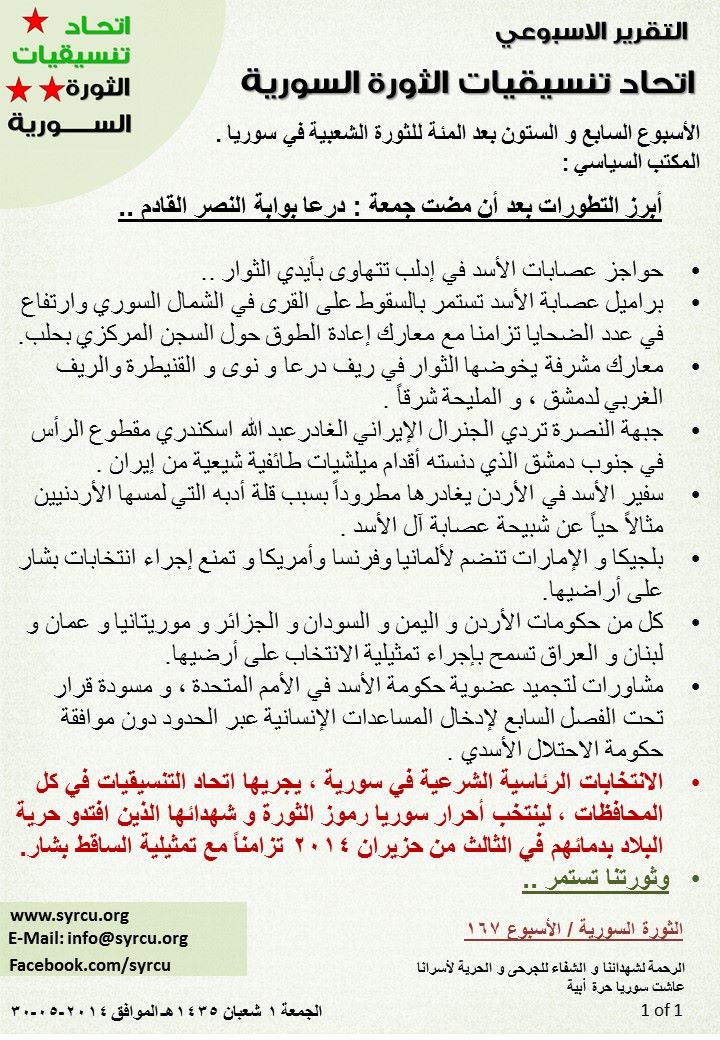 التقرير الاسبوعي جديد الأحداث السياسية , الأسبوع 167 للثورة