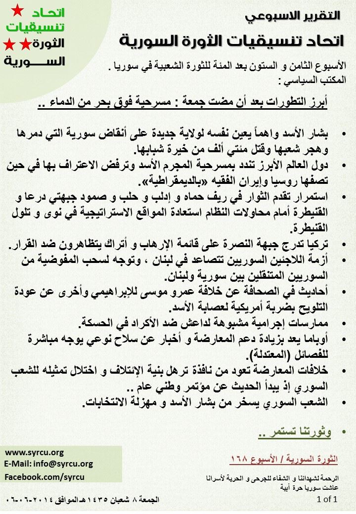 التقرير الاسبوعي جديد الأحداث السياسية , الأسبوع 168 للثورة
