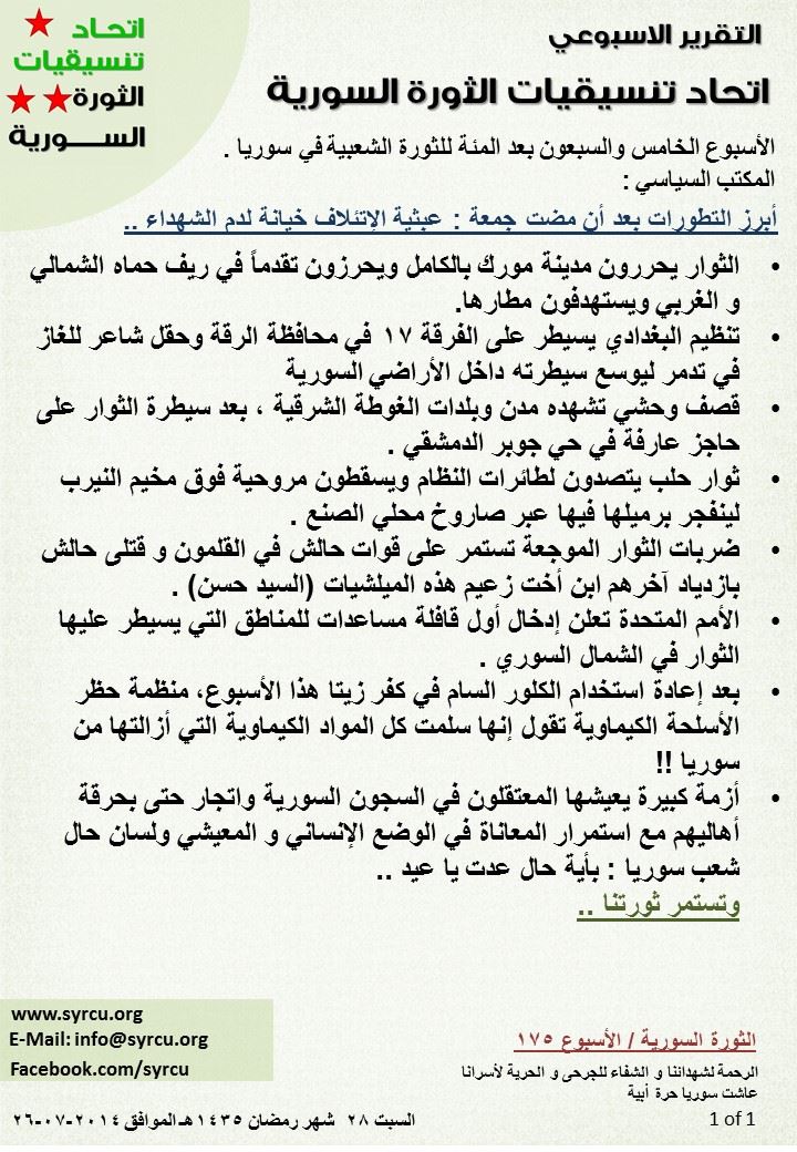 التقرير الاسبوعي جديد الاحداث السياسية , الاسبوع 175 للثورة