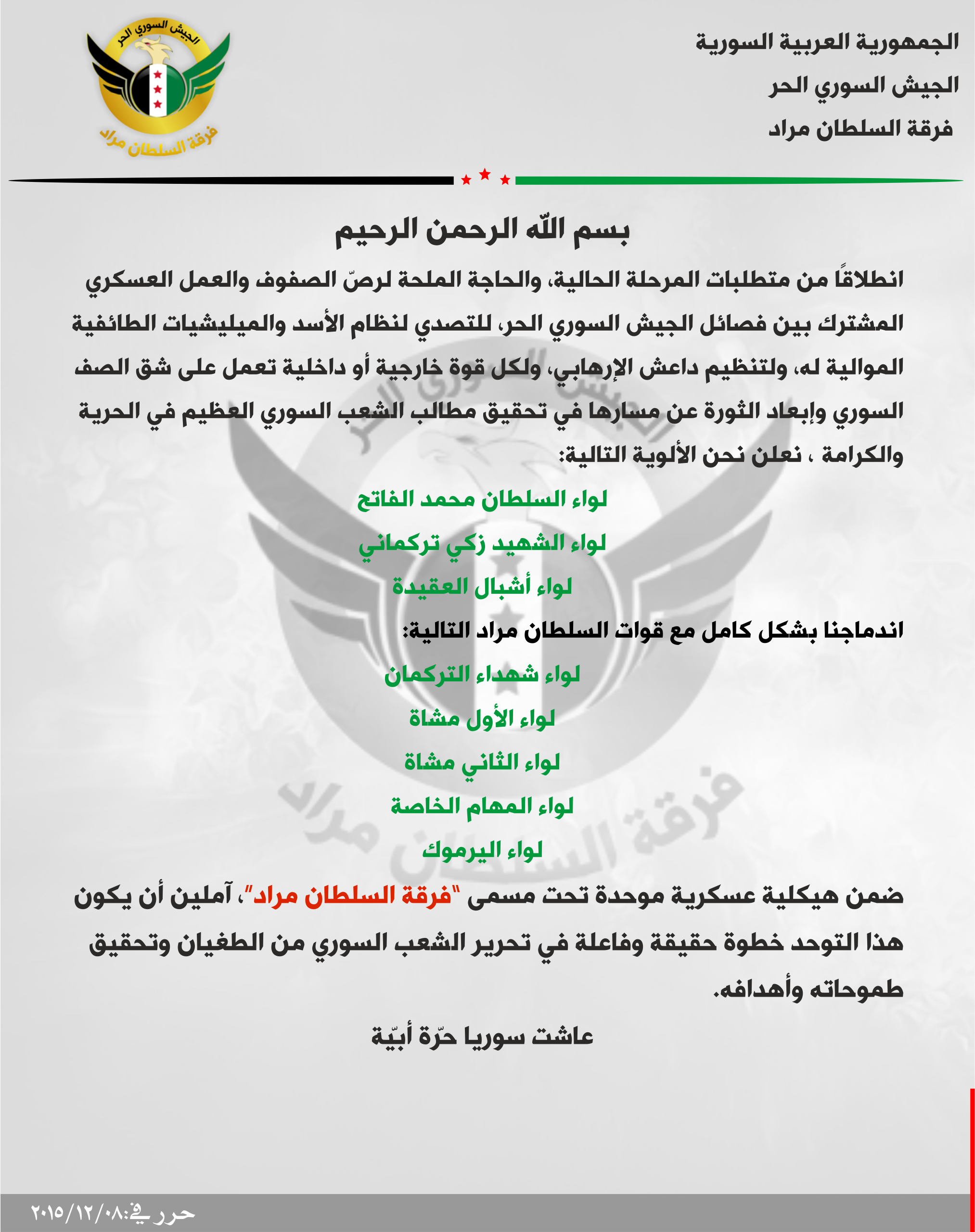 بيان تشكيل فرقة السطان مراد