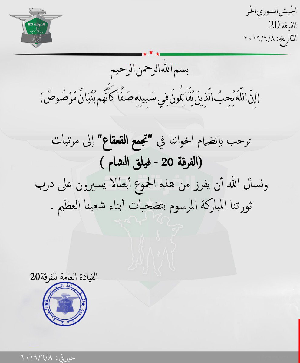انضمام تجمع القعقاع إلى مرتبات الفرقة 20 - فيلق الشام