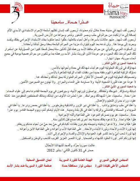 بيان صحفي مشترك بخصوص الذكرى الثلاثين لمجزرة حماة 1982