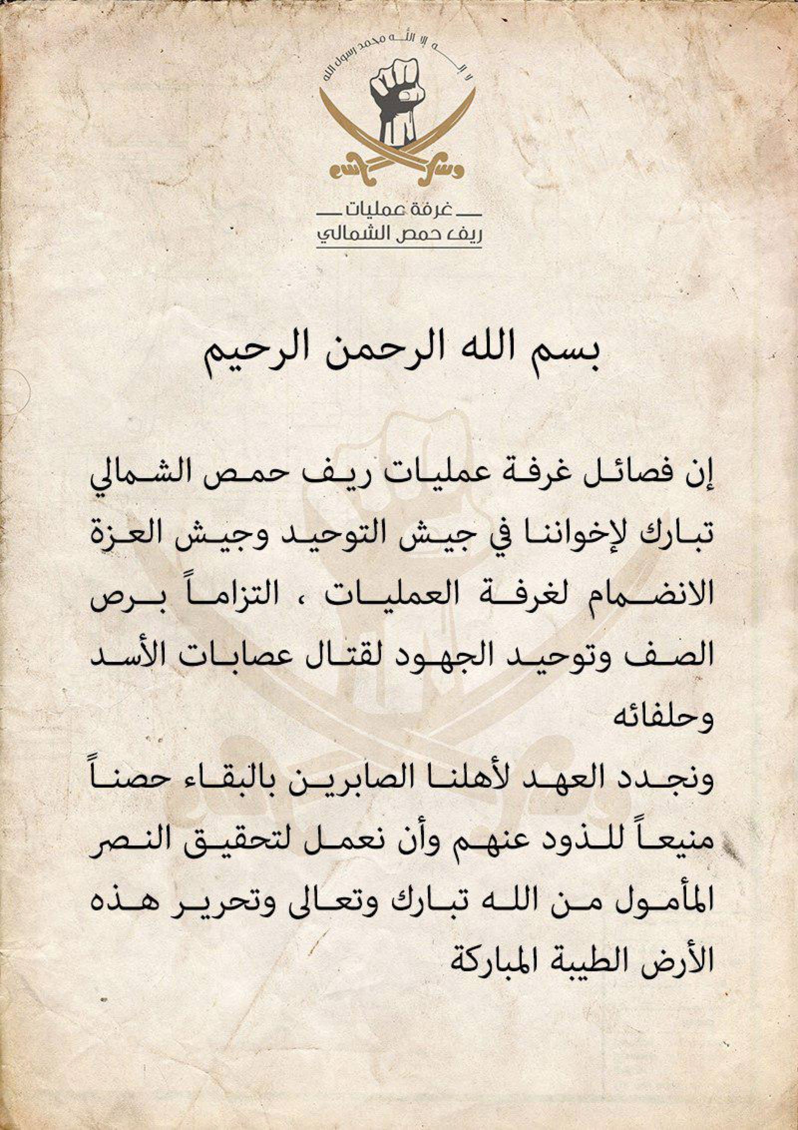 جيش التوحيد وجيش العزة ينضمان إلى غرفة عمليات ريف حمص الشمالي