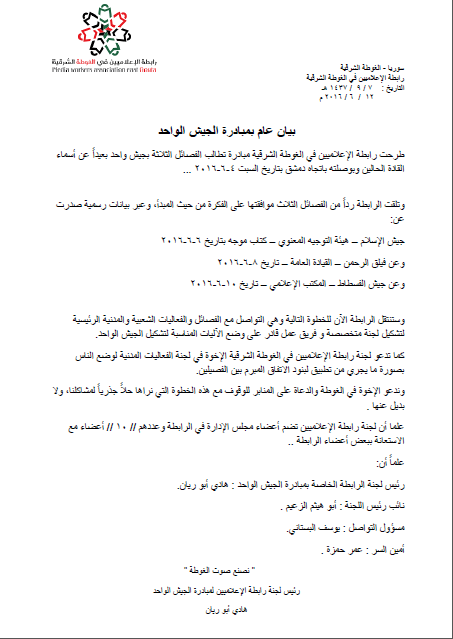 بيان من رابطة الإعلاميين للغوطة الشرقية حول مبادرة الجيش الواحد