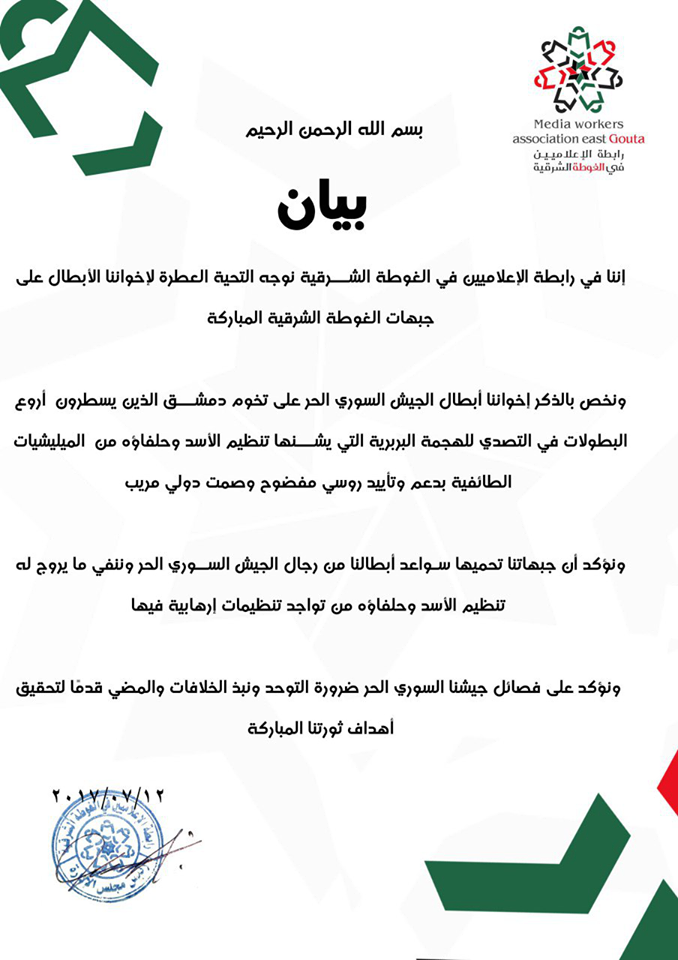 رابطة الإعلاميين في الغوطة الشرقيةكيانات متعلقة