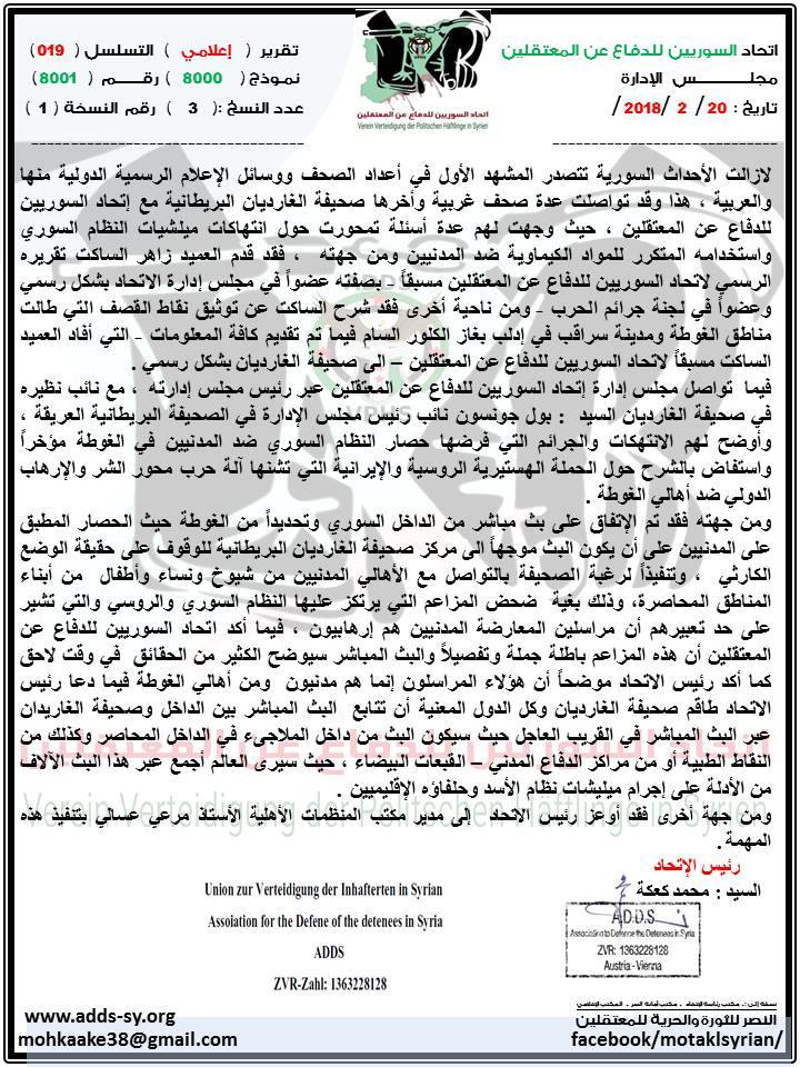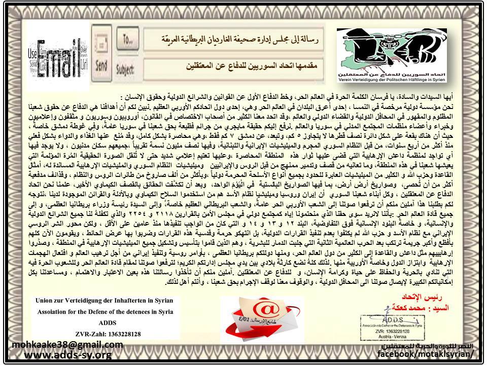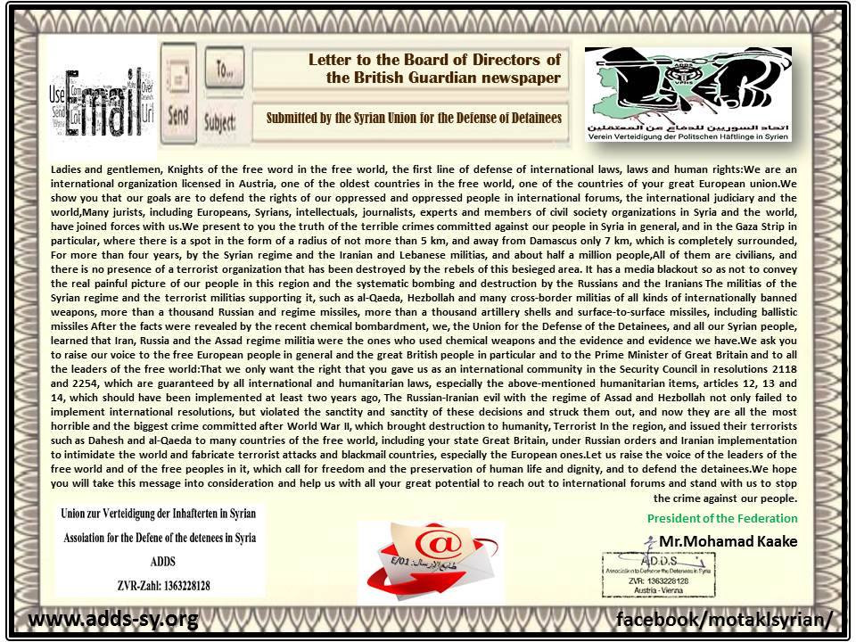 التقرير الإعلامي حول طبيعة التواصل بين صحيفة الغارديان الرسمية واتحاد السورين للدفاع عن المعتقلين