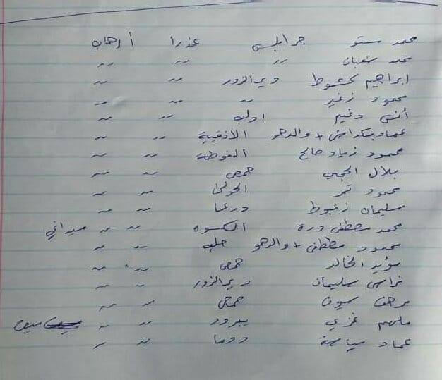 تم نقل هذه الأسماء من الفروع وصارت بسجن عدرا تحويلا واحالتهم لمحكمة الارهاب بدمشق .