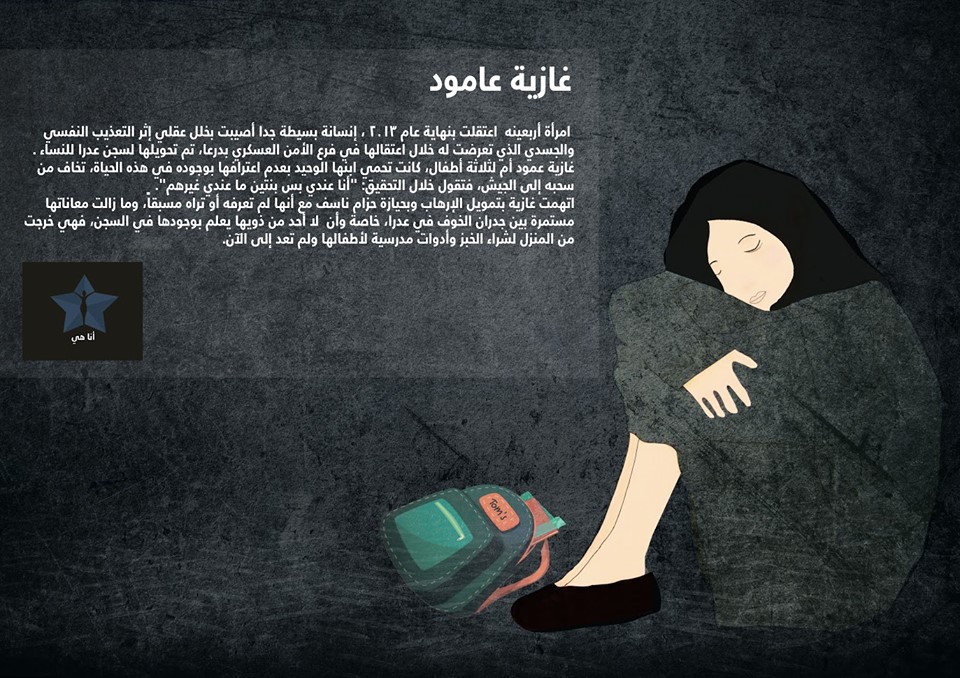 غازية لم تكن تملك اسماً في سجلات سجن النساء في عدرا ، لم يكن لها مهجع ولا زنزانة ..رغم انها من أوائل المعتقلات هناك ...خرجت غازية عامود من السجن مصابة بالجنون