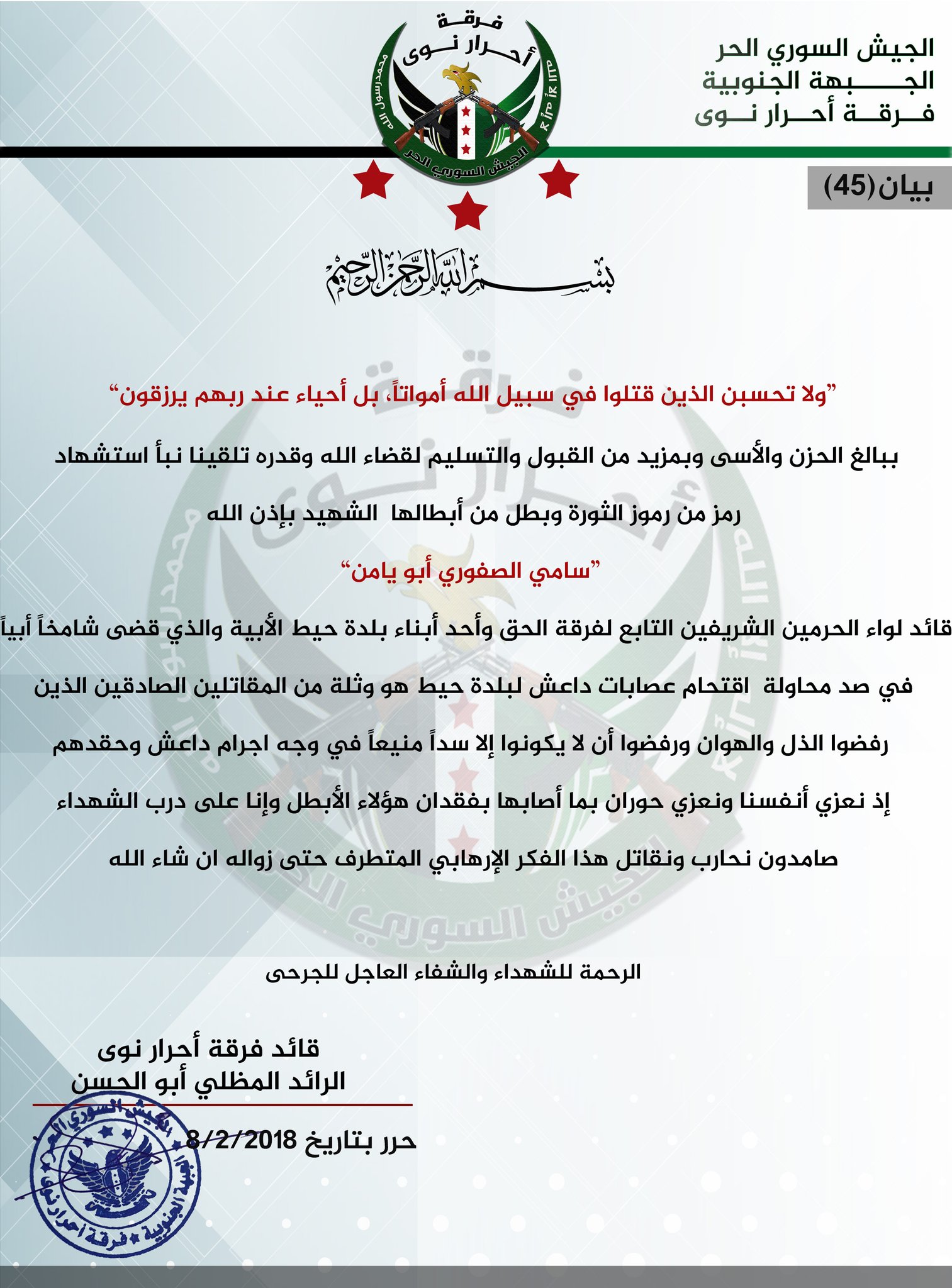فرقة أحرار نوى تعزي فرقة الحق بقائد لواء الحرمين سامي الصفوري