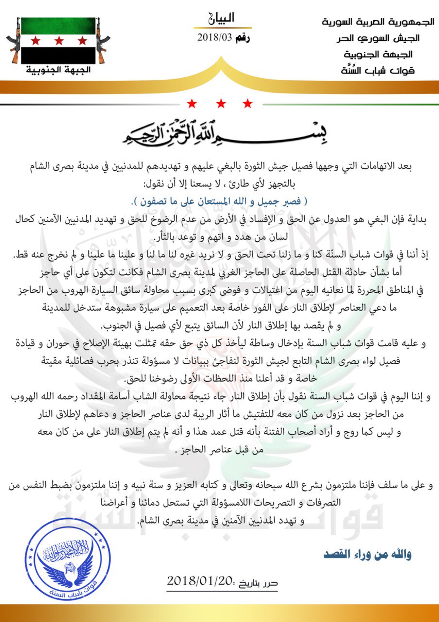 بيان من قوات شباب السنة حول الخلاف الحاصل مع جيش الثورة
