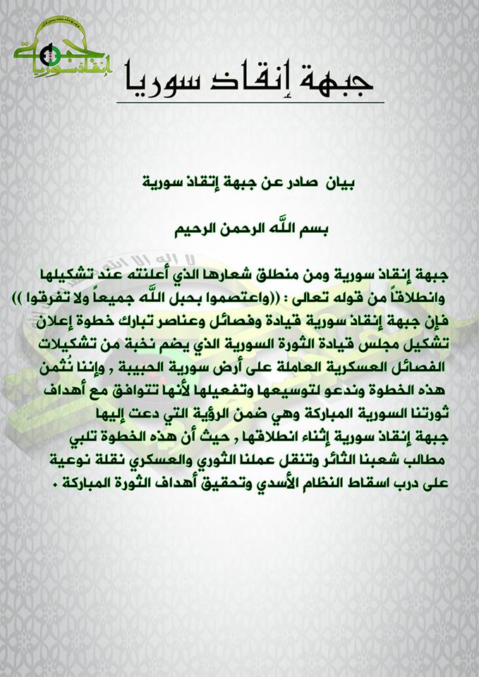 جبهة إنقاذ سورية تبارك تشكيل مجلس قيادة الثورة السورية