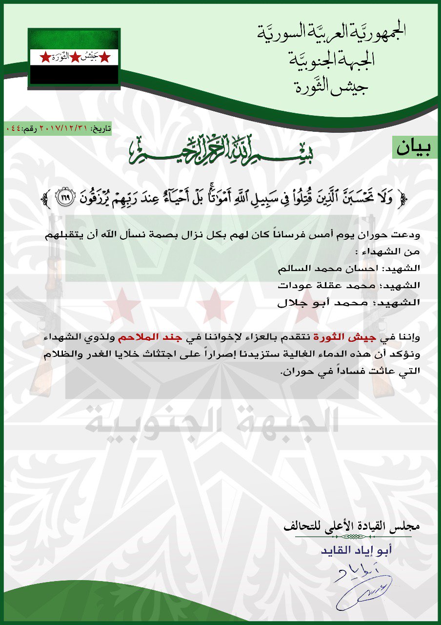 جيش الثورة يعزي جند الملاحم بعدد من مقاتليها