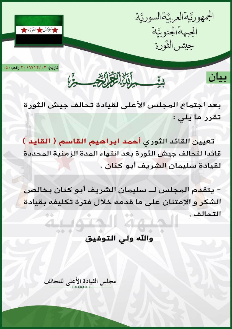 بيان تعيين أحمد إبراهيم القاسم ( القايد) قائداً عاماً لتحالف جيش الثورة