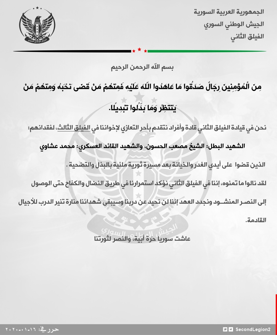 الفيلق الثاني يعزي الفيلق الثالث بالشيخ مصعب الحسون والقائد العسكري محمد عشاوي
