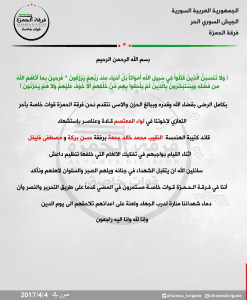 فرقة الحمزة تعزي لواء المعتصم بقائد كتيبة الهندسة محمد خالد جمعة
