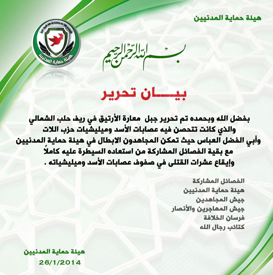 هيئة حماية المدنيين تعلن السيطرة على جبل معرة الأرتيق في ريف حلب الشمالي بالتعاون مع فصائل أخرى