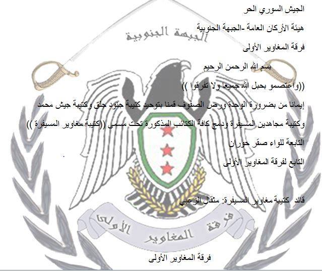 إيمانا من بضرورة الوحدة ورص الصفوف قمنا بتوحيد كتيبة جنود جلق وكتيبة جيش محمد