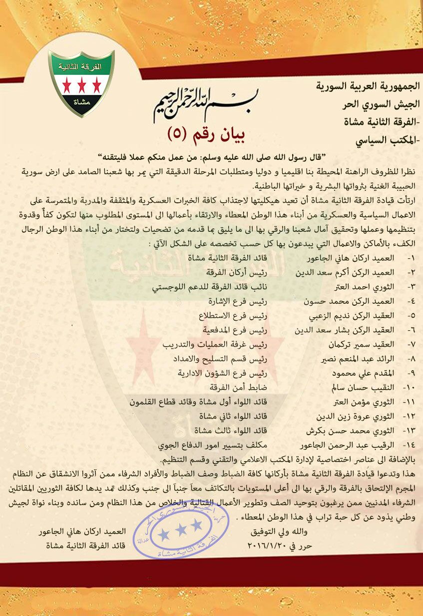 بيان إعادة هيكلة الفرقة الثانية مشاة