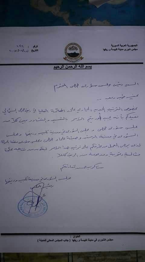 كتاب من شورى تلبيسة يطالب فيه بالتنسيق مع المجلس بالترتيبات الجديدة بالمحكمة العليا
