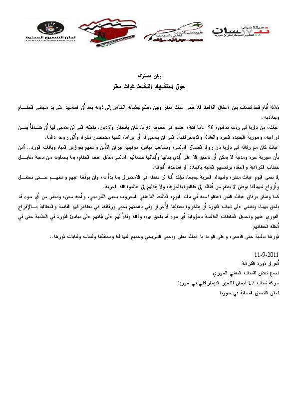 بيان مشترك حول مقتل الناشط غياث مطر