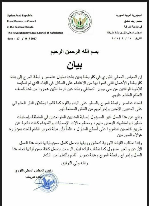 بيان المجلس المحلي لبلدة كفربطنا حول الإشتباكات التي دارت اليوم في البلدة