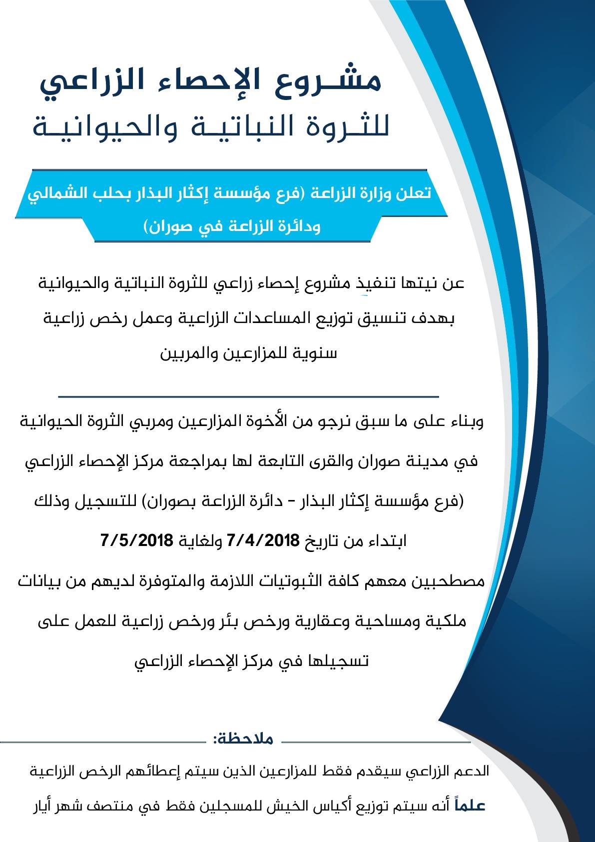 إعلان من المجلس المحلي لمدينة صوران عن مشروع الإحصاء الزراعي للثروة النباتية والحيوانية في صوران