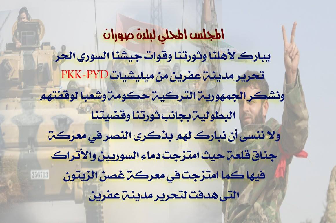 بيان تهنئة ومباركة بتحرير مدينة عفرين من المليشيات الإنفصالية