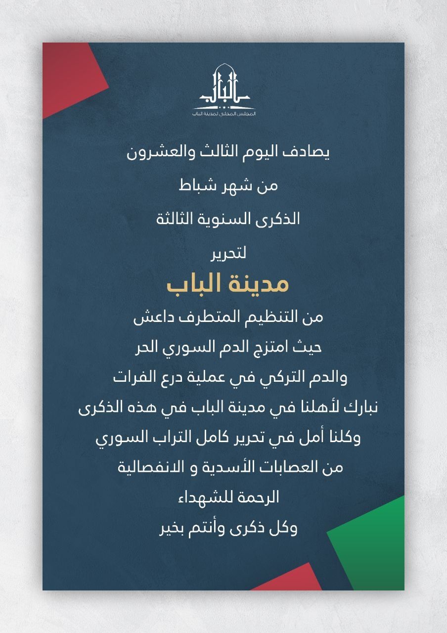 بيان حول الذكرى السنوية الثالثة لتحرير مدينة الباب من تنظيم الدولة