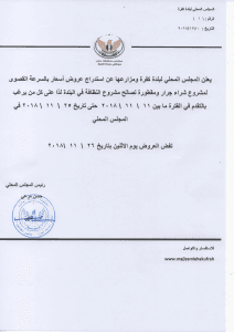 يعلن المجلس المحلي لبلدة كفرة عن استدراج عروض أسعار بالسرعة القصوى لمشروع شراء جرار ومقطورة لصالح مشروع النظافة في البلدة لذا على كل من يرغب بالتقدم في الفترة ما بين ٢٠١٨/١١/١١ حتى تاريخ ٢٠١٨/١١/٢٥ في المجلس المحلي