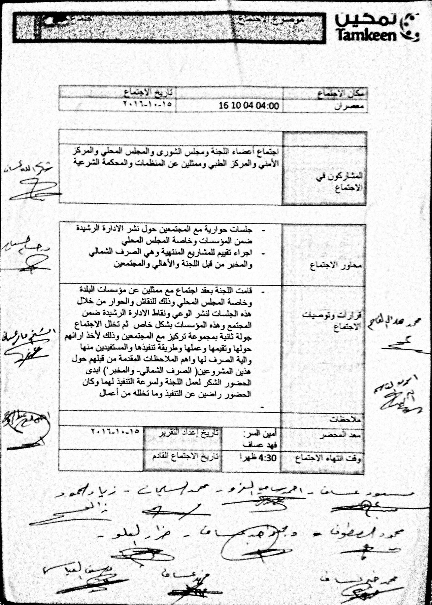 محضر اجتماع لجنة تمكين في بلدة معصران ا الذي عقد في 15/10/2016