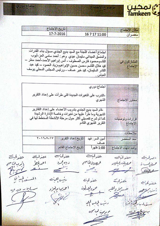 محضر اجتماع لجنة تمكين في بلدة معصران ا الذي عقد في 17/7/2016