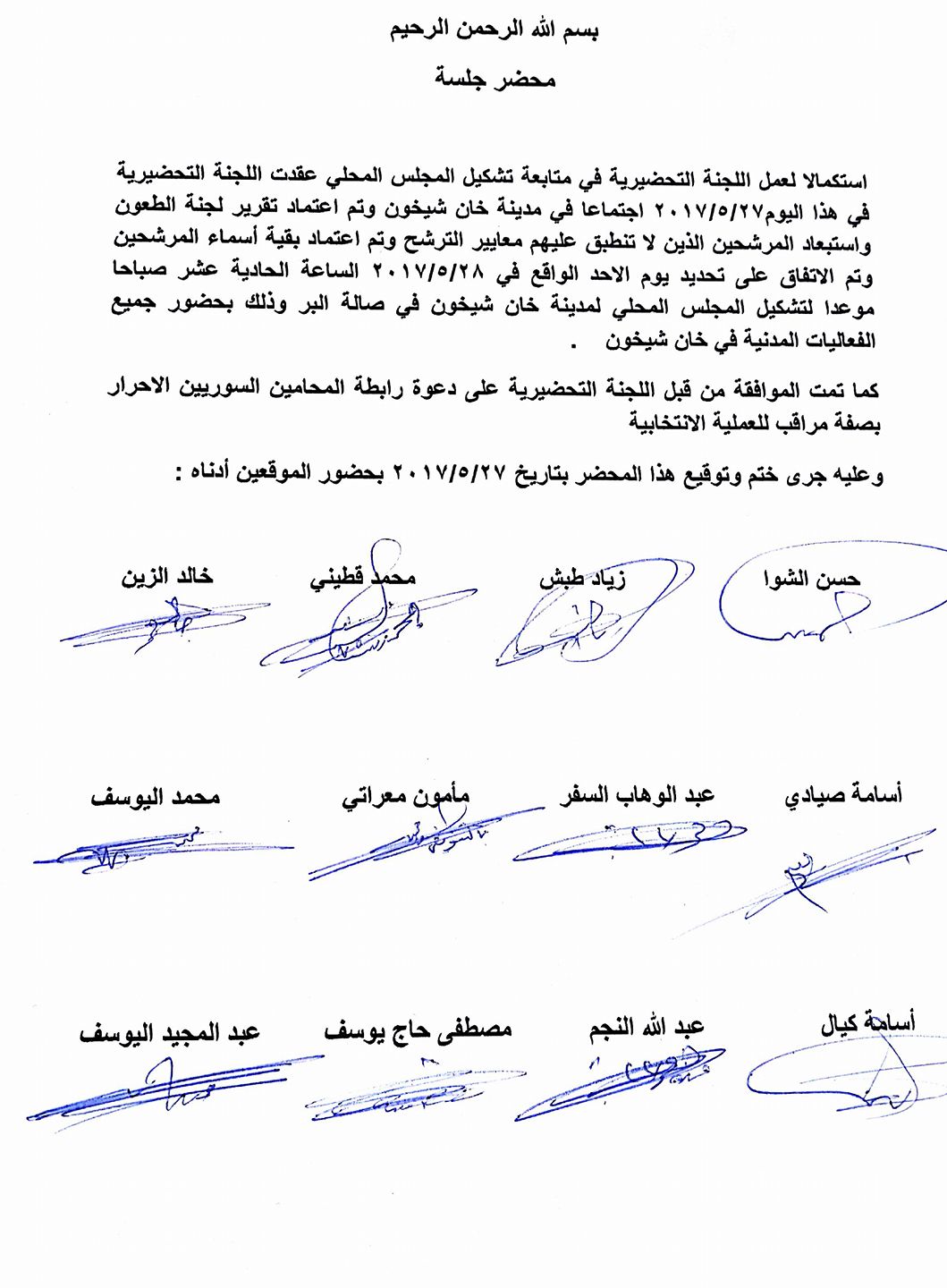 تقرير اللجنة التحضيرية المكلفة بتشكيل المجلس المحلي لمدينة خان شيخون