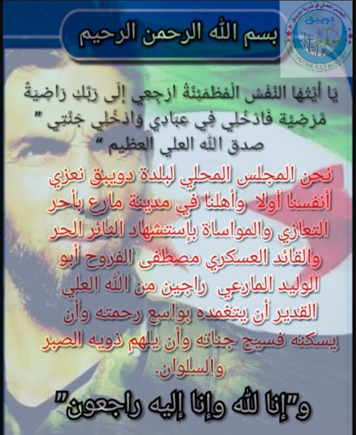 المجلس المحلي لقرية دويبق يعزي أهالي مدينة مارع بالقائد مصطفى فروح