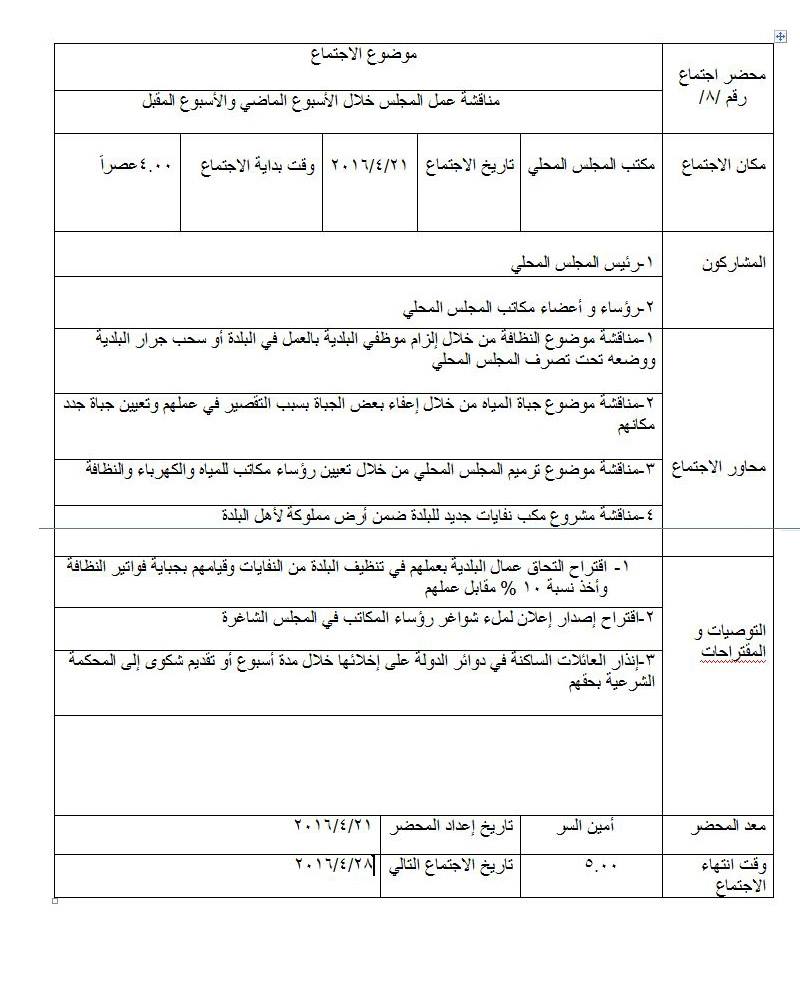 محضر اجتماع المجلس المحلي في بلدة معرة حرمة لمناقشة عمل المجلس
