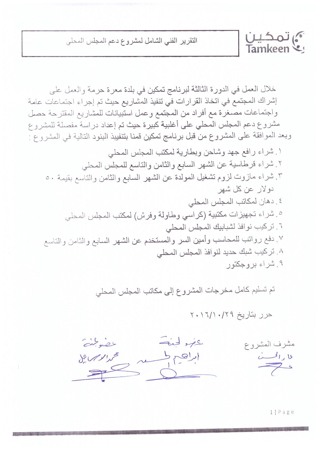 التقرير الفني للجنة تمكين معرة حرمة حول مشروع دعم المجلس المحلي