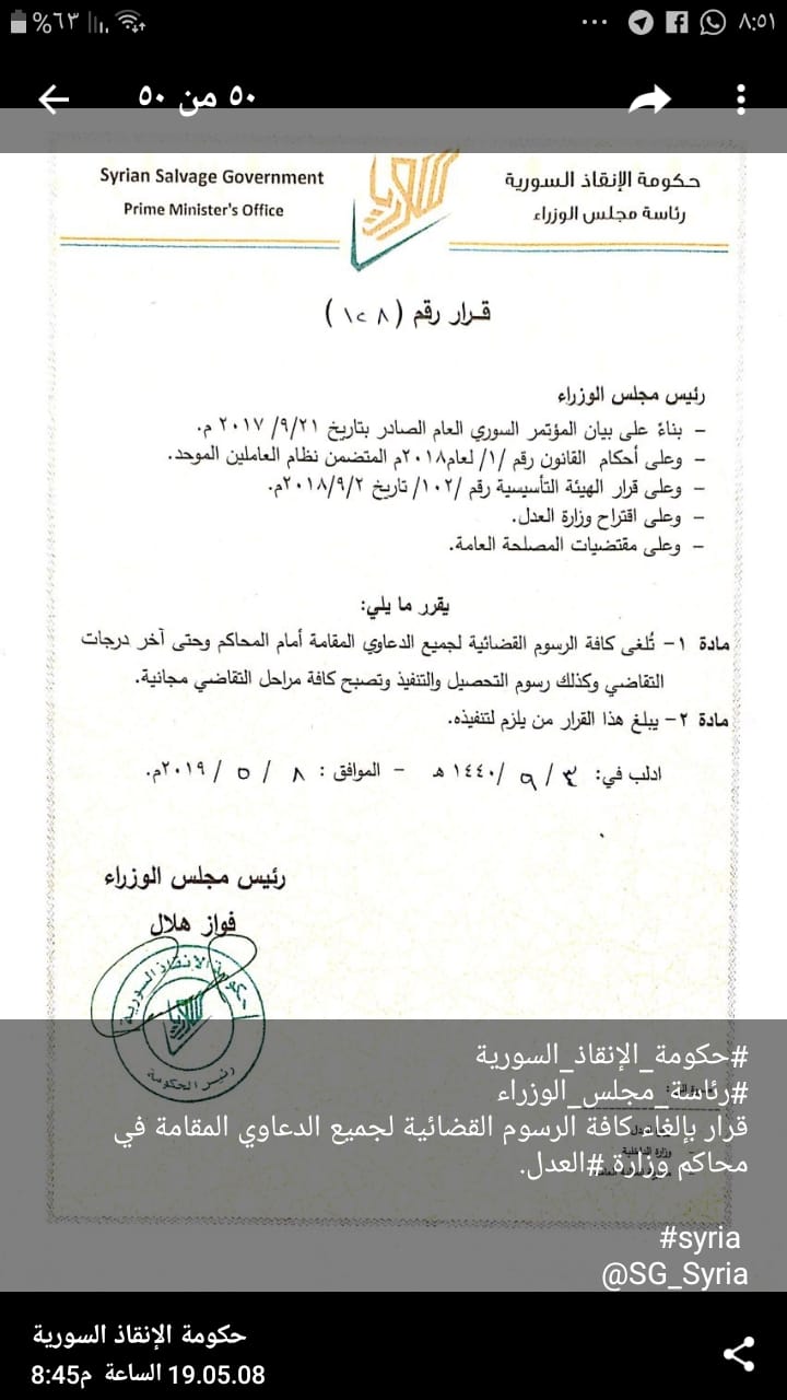 تعميم من رئاسة الوزراء في حكومة الإنقاذ بإلغاء كافة الرسوم القضائية لجميع الدعاوي المقامة في المحاكم