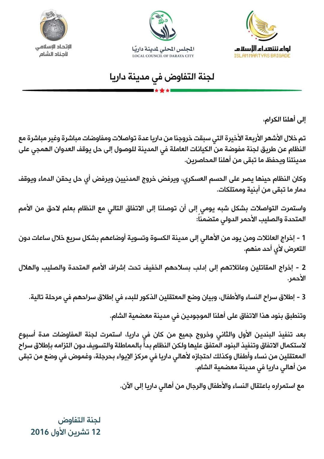 بنود اتفاقية التهجير في مدينة داريا