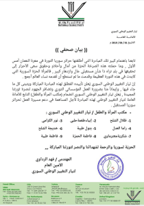 بيان صحفي من تيار التغيير الوطني السوري بشأن المبادرة التي أطلقها حرائر معرة النعمان