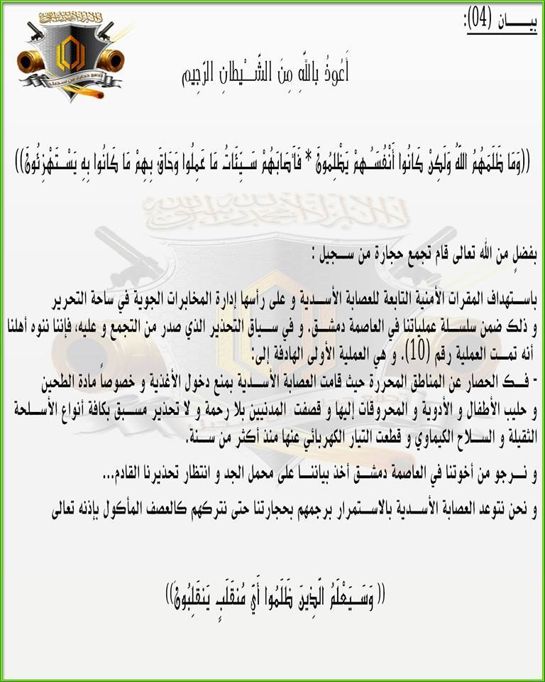 و نــرجو من أخوتنا في العاصمة دمشق أخذ بياننا على محمل الجد و انتظار تحذيرنا القادم...