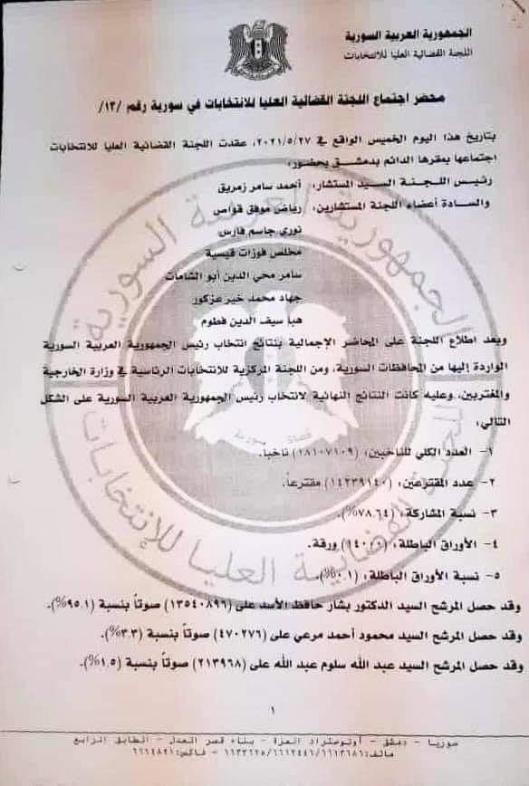 بيان محضر اجتماع اللجنة القضائية العليا للإنتخابات في سوريا