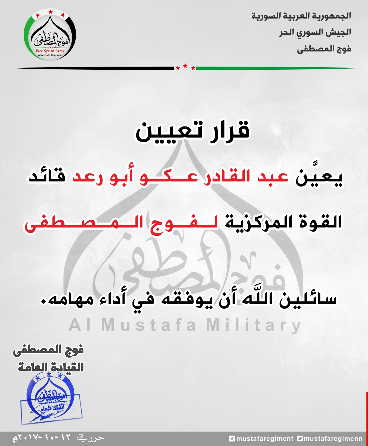 قرار من فوج المصطفى بتعين عبد القادر عكو قائداً للقوة المركزية في الفوج