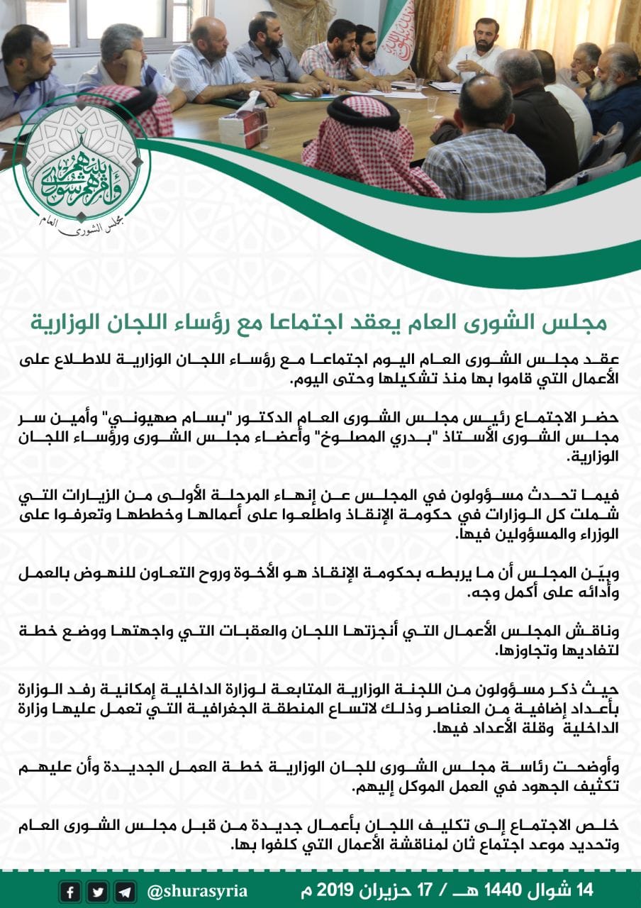 محضر اجتماع مجلس الشورى العام مجلس الشورى مع رؤساء اللجان الوزارية