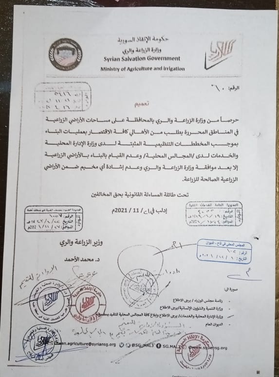 تعميم من وزراة الزراعة في حكومة الإنقاذ بمنع البناء على الأراضي الزراعية إلا بموافقة