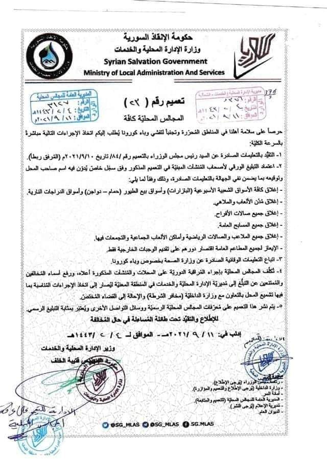 تعميم من وزارة الإدارة المحلية بخصوص بعض الإجراءات للحد من انتشار فيروس كورونا