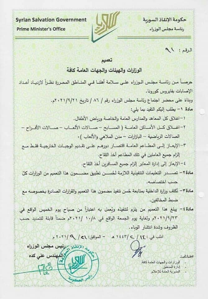 تعميم من حكومة الإنقاذ حول بعض الإجراءات والقرارات للحد من انتشار فيروس كورونا (1)