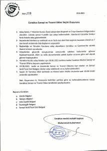 إعلان من المجلس المحلي لمدينة جرابلس وريفها حول إجراء انتخابات أعضاء المكتب التنفيذي لغرفة التجارة والصناعة في جرابلس