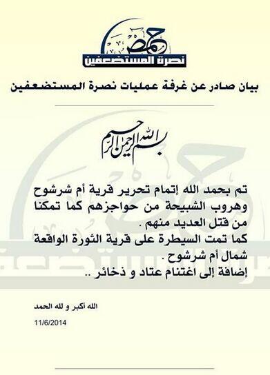 بيان السيطرة على قرية أم شرشوح والثورة في حمص ضمن معركة الآن نغزوهم